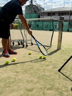 みなさんの打ち方を見て、ラケット出しから手出しへ変更。